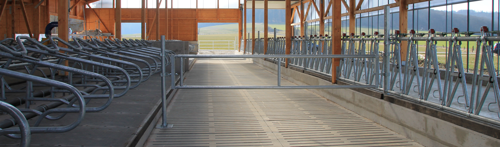 Einen Standard, auf den alle Kunden vertrauen, ist der unsererseits gegebene hohe Sicherheitsanspruch an alle Einbauten. Extra stabile Gitter und Verriegelungen aus verzinktem Eisen halten auch Bullen zurück. Die sorgfältige Auswahl der verbauten Materialien und deren exakte Installation bietet nachhaltigen, optimalen Schutz für die im Stall lebenden Tiere sowie die mit den Tieren arbeitenden Personen.